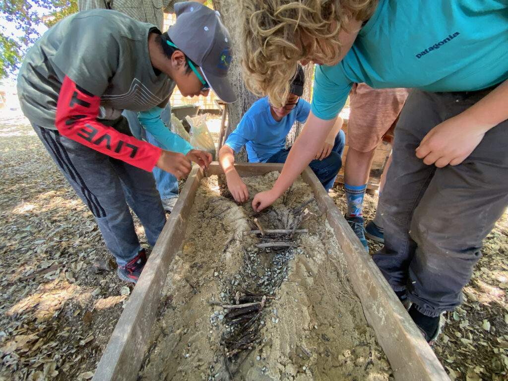 • Learning about fluvial geomorphology (Yes, the campers know what it is!) and creek restoration by playing with a stream table